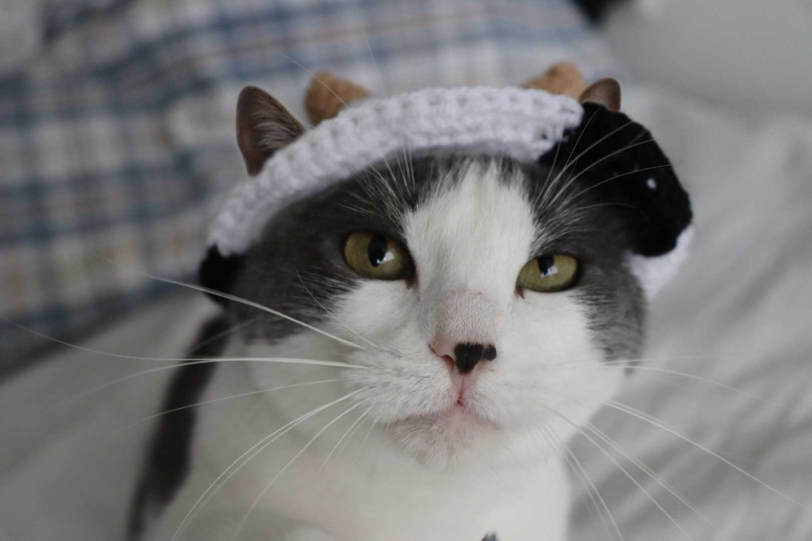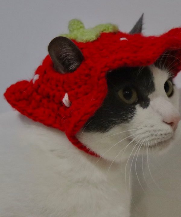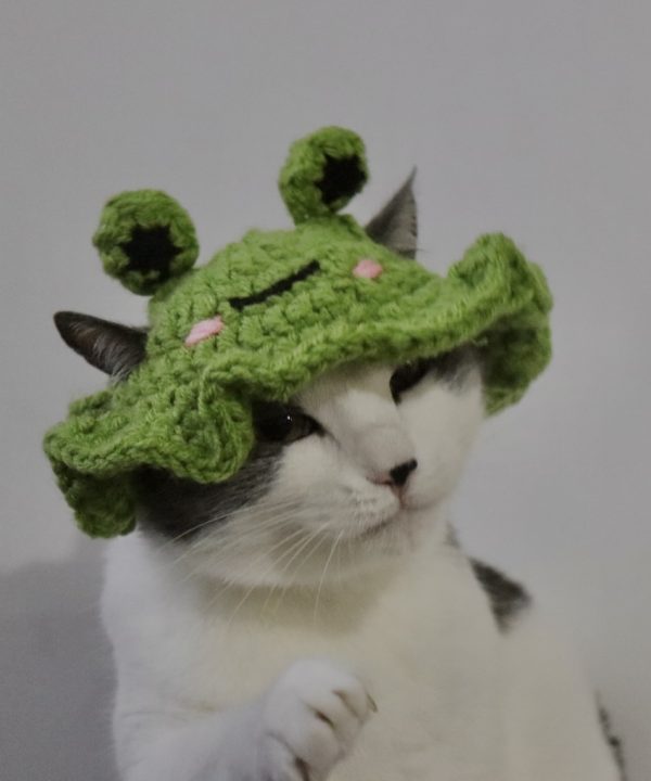 Cow-shaped pet hat with wavy edge and adjustable string.