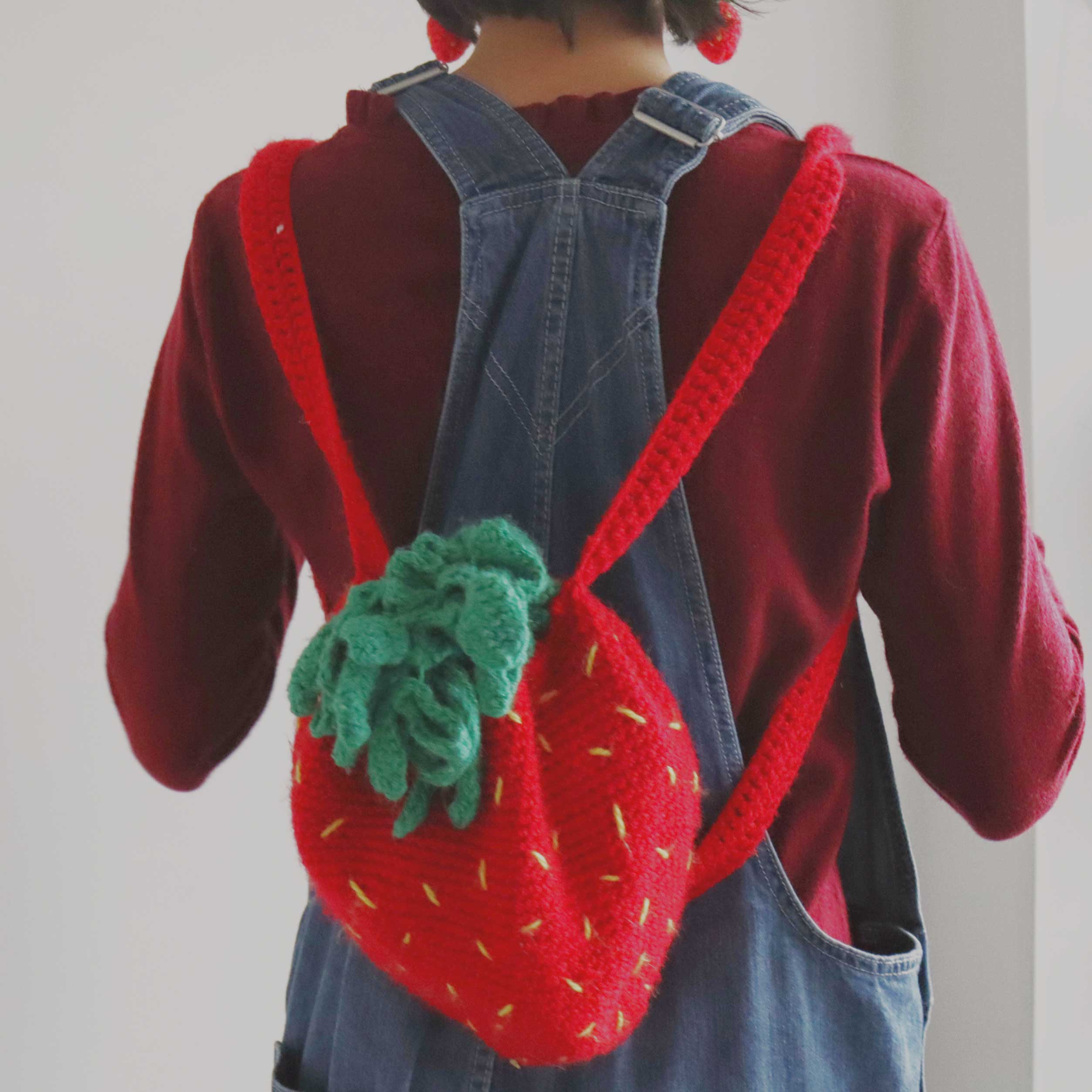 Strawberry-shaped suitcase with a ribbon closure. Dimensions: 39cm long x 26cm wide.